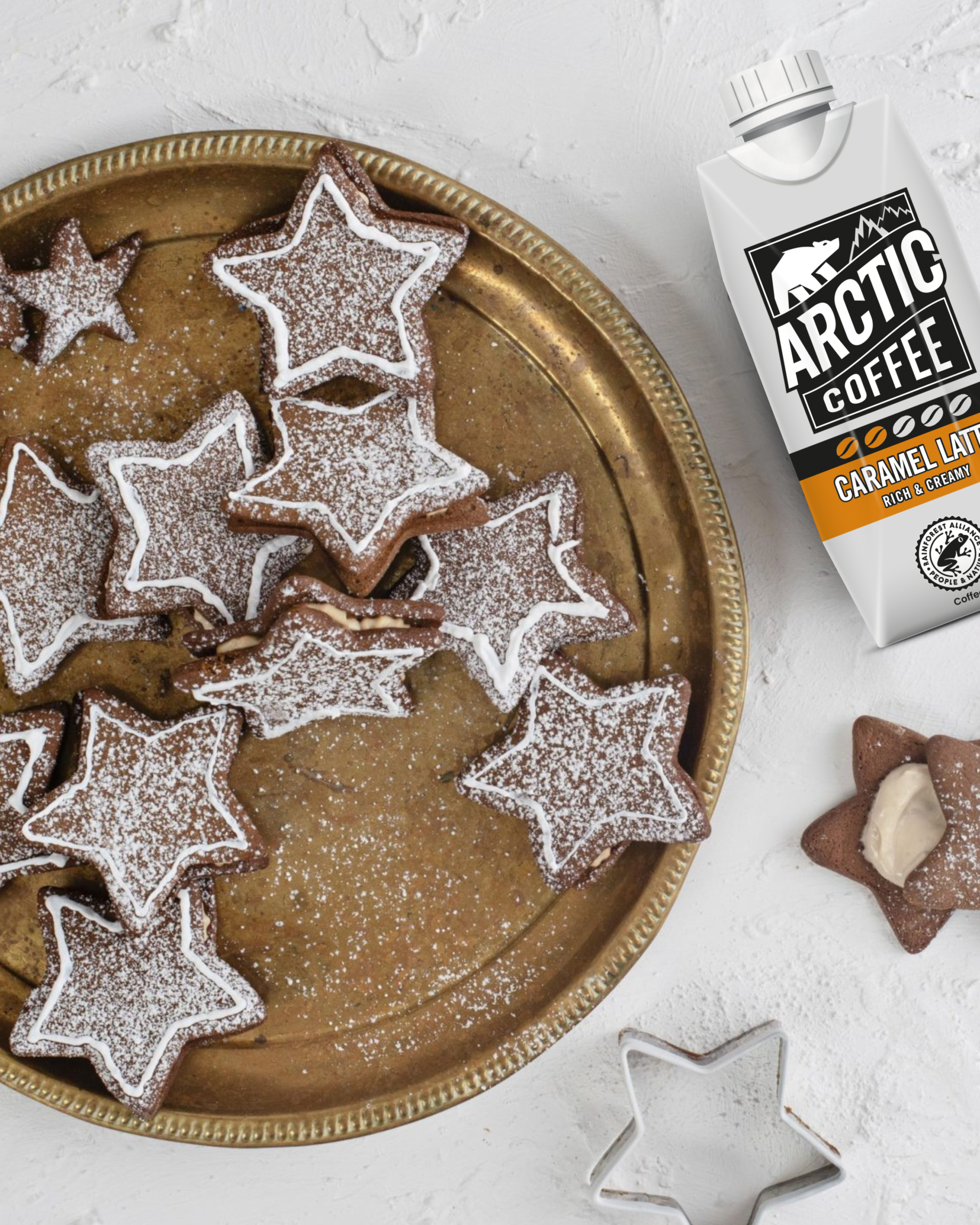 Get in the festive spirit with these gingerbread star cookies sandwiched together with a delicious Caramel Latte cream